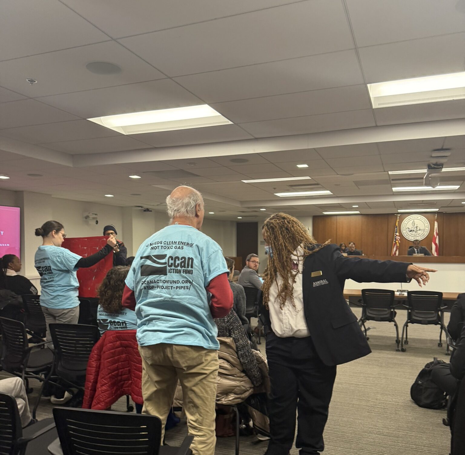 WASHINGTON, D.C. — The D.C. Public Service Commission (PSC) hearing on Washington Gas’s pipeline replacement program, Project Pipes, had to stop in its tracks today, as residents broke into protest songs, clapping, and noisemaking to call out what they described as the gas utility’s corporate greed and the Commission’s continued failure to protect ratepayers.