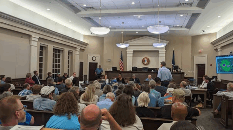 Community packs the room at a public hearing to oppose the project. Photo via Communicy Climate Collaborative (c3) at Fluvanna Planning Commission public hearing on Tenaska gas
